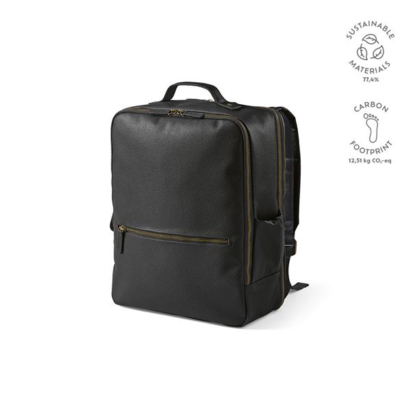 Odkryj nasz 20-litrowy plecak ze skóry pochodzącej z recyklingu. Oferuje dużą komorę, wyściełane miejsce na laptopa (17″), przednią kieszeń, wzmocnione uchwyty i ukryte paski na ramię. Może być używany jako plecak lub jako torba weekendowa, otwierając środkową kieszeń i zwiększając pojemność.