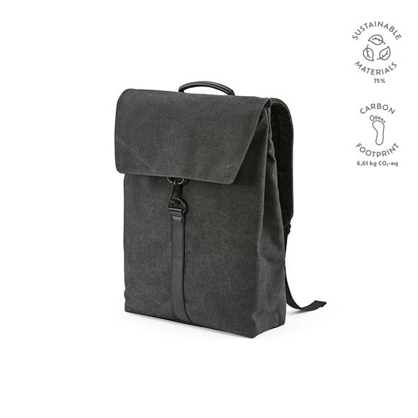 Dzięki eleganckiemu i funkcjonalnemu designowi, nasz 25-litrowy plecak starannie łączy bawełniane płótno z recyklingowanymi detalami PU. Mieści 17-calowy laptop, zabezpieczony metalowym zamkiem. Wyściełane plecy i wyściełane paski, górna część zamykana na zatrzask.