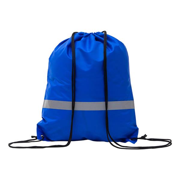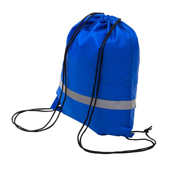 Solidny plecak promocyjny wykonany z poliestru 210D, obszyty dookoła 360° taśmą odblaskową o szerokości 2,5 cm. Dobrze widoczny z oddali, zwiększa bezpieczeństwo. Pojemność 7 litrów.