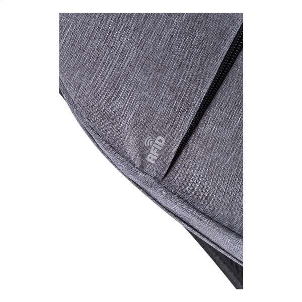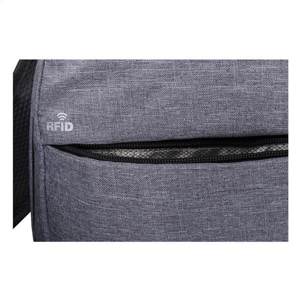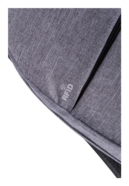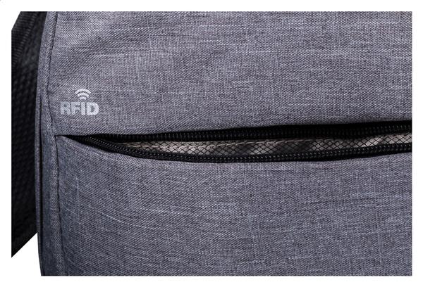 Plecak z ochroną RFID i wieloma przegródkami na zamek błyskawiczny, wyściełaną przegrodą na laptopa (15″), wyściełanymi plecami i paskami na ramiona, Z wbudowanym złączem USB dla powerbanków, poliester 300D.