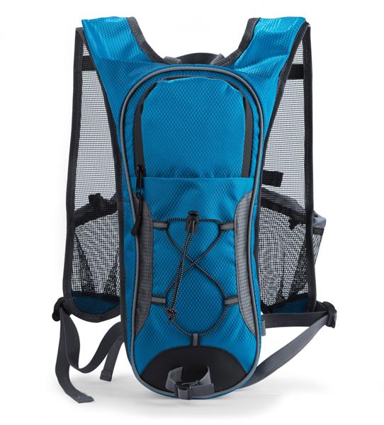 Plecak rowerowy z miejscem na bukłak. Posiada siateczkowe szelki zapewniające przewiewność, wodoodporny zamek oraz gumkę troczącą na ściance frontowej. Dodatkowo, plecak wyposażony jest w dwa pasy piersiowe umożliwiające większą stabilność i wygodę. Plecak wykonany z poliestru 420D.Pojemność plecaka: około 3,2L. Znakowanie haftem jest możliwe, ale wyłącznie pod indywidualne zapytanie.