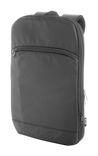 Wodoodporny, rozszerzalny plecak RPET z główną komorą na suwak, kieszenią przednią na suwak i wyściełaną przegrodą na laptopa (15″). Z paskiem na wózek, wyściełanym tyłem i paskami na ramiona. Poliester RPET 600D powlekany poliuretanem, z charakterystyczną metką RPET.