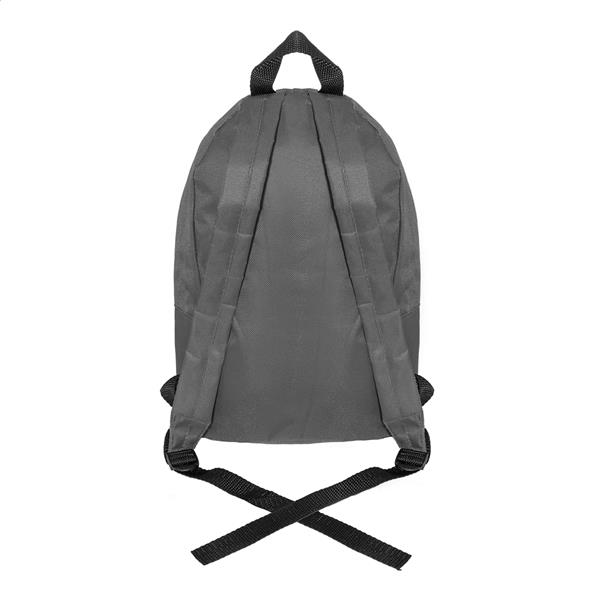 Plecak RPET z główną komorą zapinaną na zamek, przednią kieszenią zapinaną na zamek, wyściełanymi plecami i paskami na ramiona. Poliester RPET 600D, z charakterystyczną metką RPET.