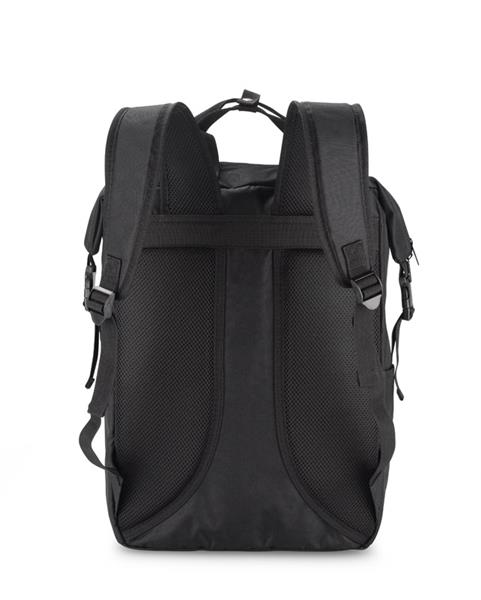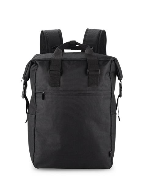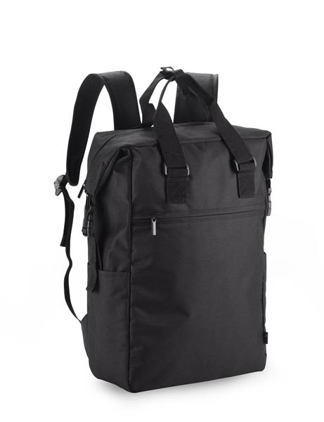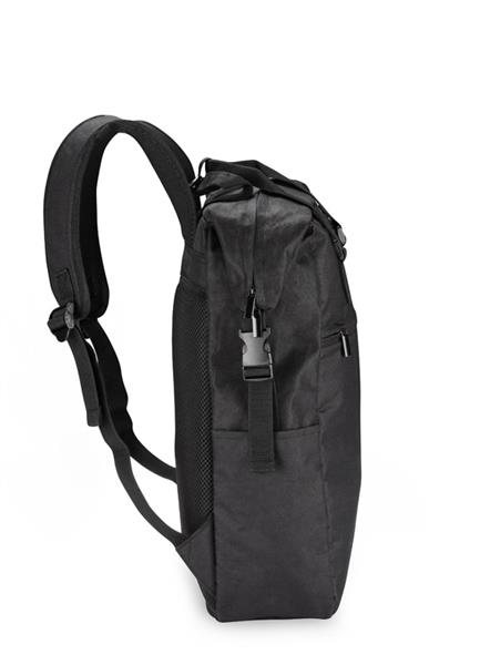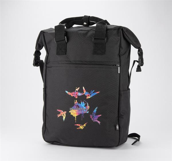 Plecak DEMOKO to produkt oryginalny i niebanalny. Posiada szerokie zamknięcie na suwak oraz wygodne rączki. Na zewnątrz jest jedna kieszonka zapinana na zamek i dwie małe boczne idealne na bidon. W pasie umieszczony został pasek zapinany na klamrę ułatwiający dopasowanie plecaka, zwiększając wygodę użytkowania. Plecy dodatkowo profilowane. Do plecaka zmieści się laptop 17”. Wykonany jest z poliestru 600D rPET.