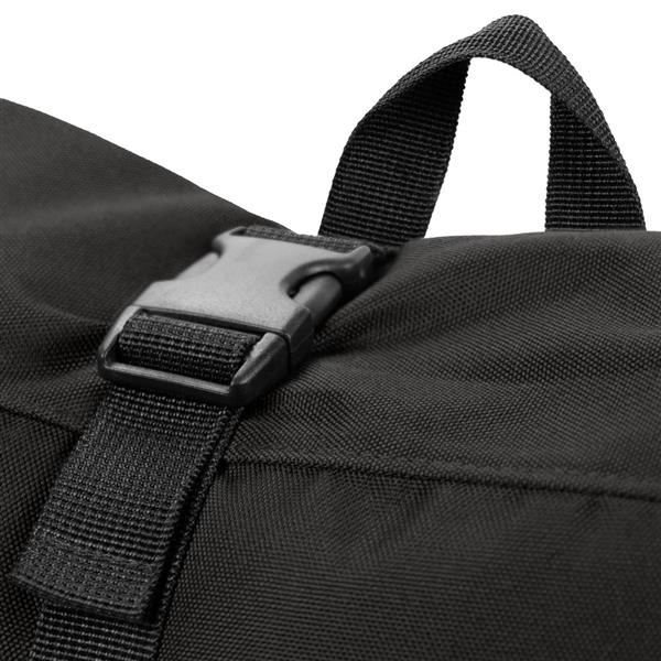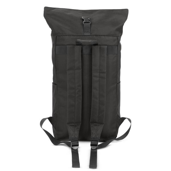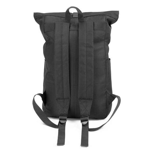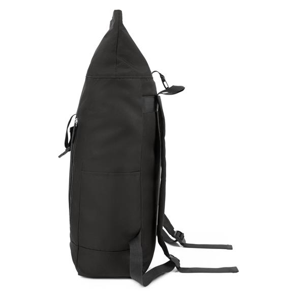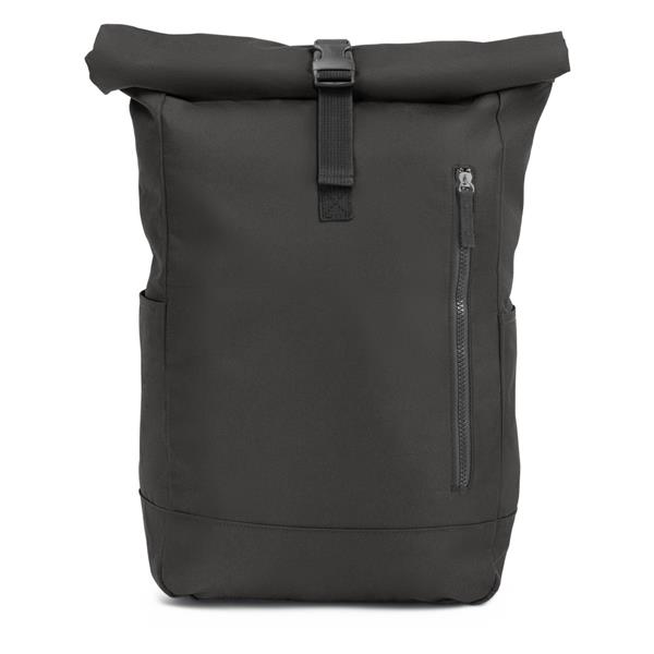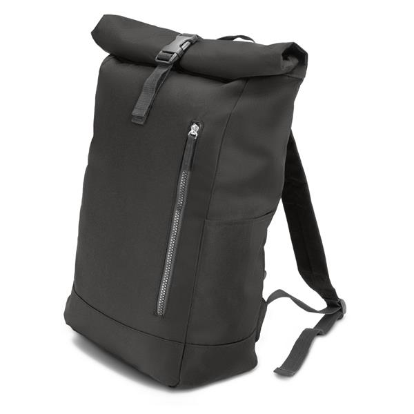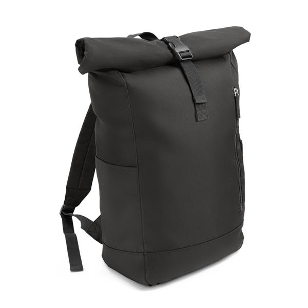 Plecak z przednią kieszenią i główną przegrodą na zamek błyskawiczny, wykonany z RPET, zgodny z certyfikatem GRS (Global RecycIed Standard), 2 kieszenie boczne, rozwijalna główna kieszeń zamykana na klamrę, która umożliwia zwiększanie pojemności plecaka oraz lepiej chroni przed czynnikami atmosferycznymi po zwinięciu, regulowane paski na ramię