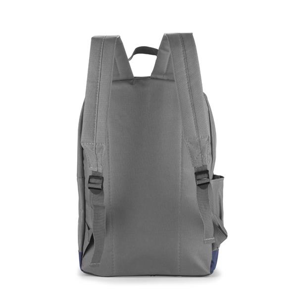 Plecak ENVI wykonany jest z poliestru 600D RPET, co czyni go bardziej przyjaznym środowisku. Posiada jedną komorę główną zapinaną dwoma suwakami. Dno plecaka oraz plecy są lekko usztywnione. Z przodu znajduje się spora kieszeń zapinana na zamek, która pomieści potrzebne drobiazgi. Z boku znajduje się otwarta kieszonka mieszcząca małą butelkę wody.