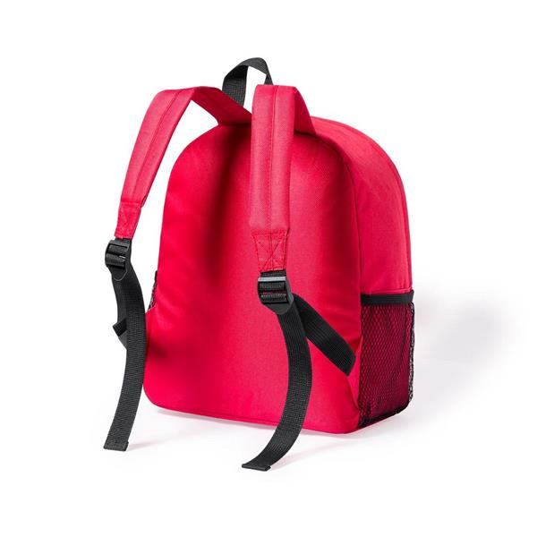 Plecak RPET, przegroda główna i kieszeń przednia na zamek błyskawiczny, kieszonki boczne z siateczki, rozmiar dziecięcy