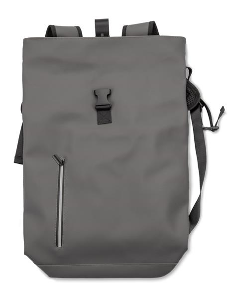 RULO to plecak wykonany z najwyższej jakości wodoodpornego materiału, który skutecznie chroni zawartość przed deszczem i wilgocią. Główna komora plecaka zamykana jest na zamek, z możliwością zrolowania i dodatkowego zabezpieczenia plastikowym zatrzaskiem. Wnętrze wyściełane miękką bawełnianą podszewką skrywa dwie praktyczne kieszonki na drobiazgi, które ułatwią organizację. Dzięki specjalnej siatce mesh na plecach, RULO zapewnia doskonałą wentylację i komfort noszenia, nawet podczas długich spacerów. Tkanina dystansowa, która nie chłonie wody i szybko schnie, sprawia, że plecak jest idealny na każdą pogodę. Od strony pleców znajduje się ukryta kieszeń na laptopa, zapinana na zamek, zapewniając jednocześnie łatwy dostęp i dodatkowe bezpieczeństwo. Kieszeń jest przystosowana do laptopów o przekątnej ekranu do 15,6 cali, co czyni plecak praktycznym rozwiązaniem dla użytkowników laptopów o standardowym rozmiarze. Po zewnętrznej stronie plecaka znajduje się mała kieszeń na drobiazgi, zapinana na zamek i obszyta tkaniną odblaskową, co zwiększa widoczność i bezpieczeństwo użytkownika.