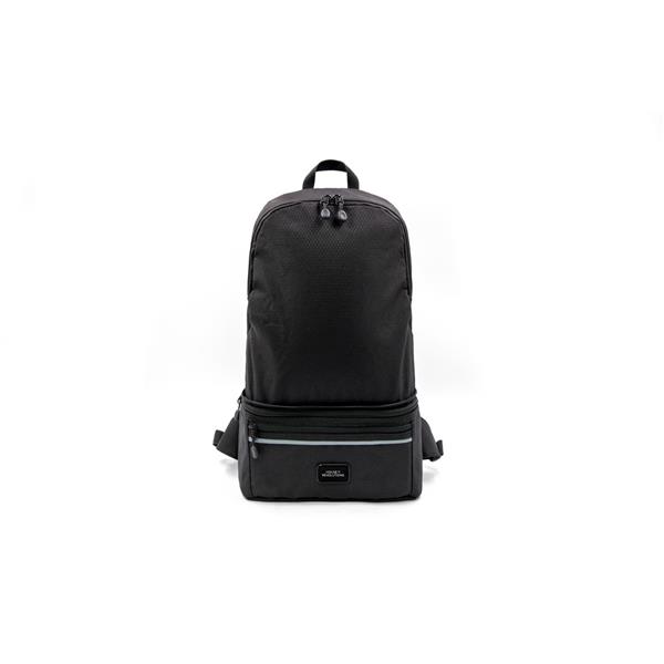 Plecak składany BrandCharger Combo, wykonany z powtórnie przetworzonych butelek PET, można go łatwo przekształcić z plecaka w torby na ramię lub do noszenia na talii, tryb plecaka zapewnia dodatkowych 6 litrów miejsca do przechowywania, sprawdzi się w podróży, szkole, siłowni, pracy, wodoodporny i odporny na plamy materiał, wyposażony w odblaskowe elementy zapewniające bezpieczeństwo, produkt wykonany z RPET i poliestru