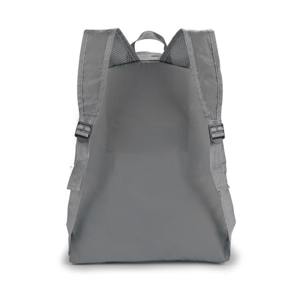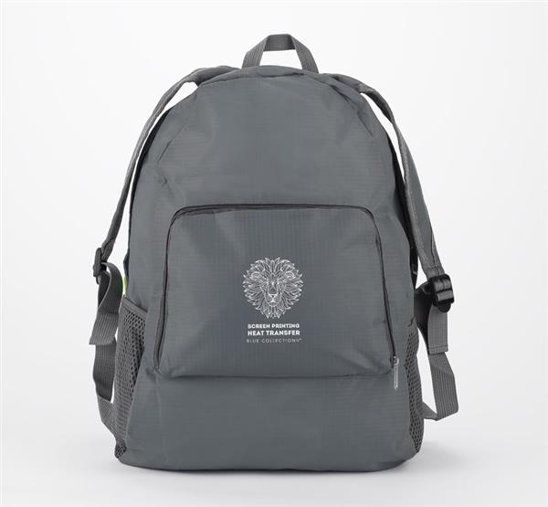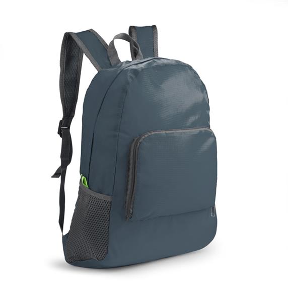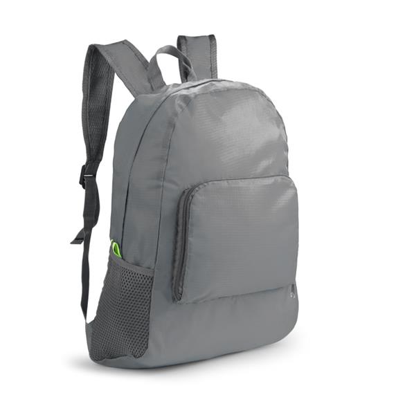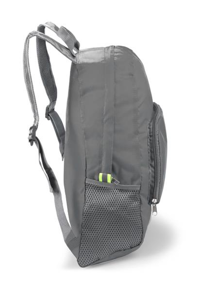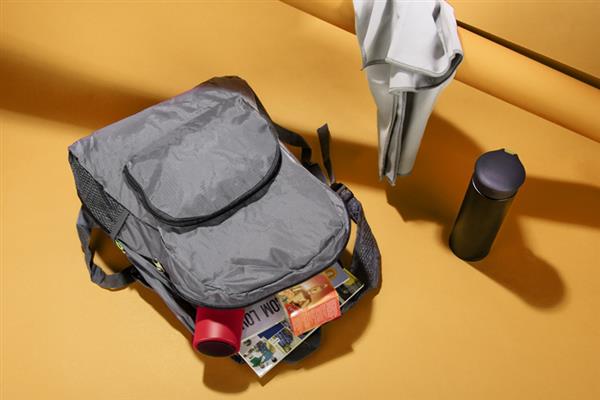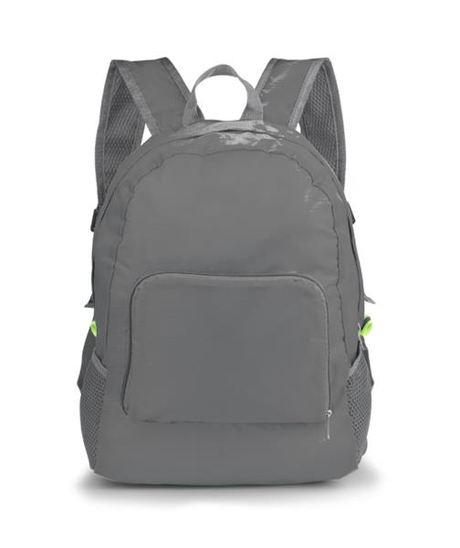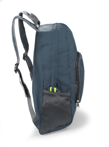 Funkcjonalny plecak, który można złożyć do niewielkich rozmiarów. Posiada jedną wewnętrzną kieszeń oraz trzy zewnętrzne – jedną zapinaną na zamek oraz dwie siateczkowe. Plecak wykonany z poliestru.
