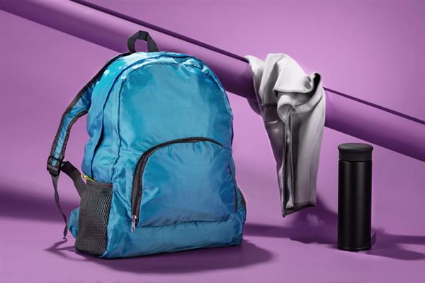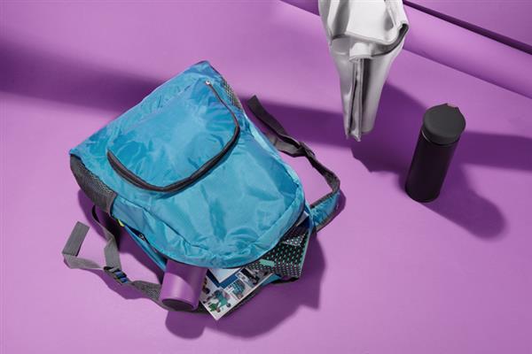 Funkcjonalny plecak, który można złożyć do niewielkich rozmiarów. Posiada jedną wewnętrzną kieszeń oraz trzy zewnętrzne – jedną zapinaną na zamek oraz dwie siateczkowe. Plecak wykonany z poliestru.