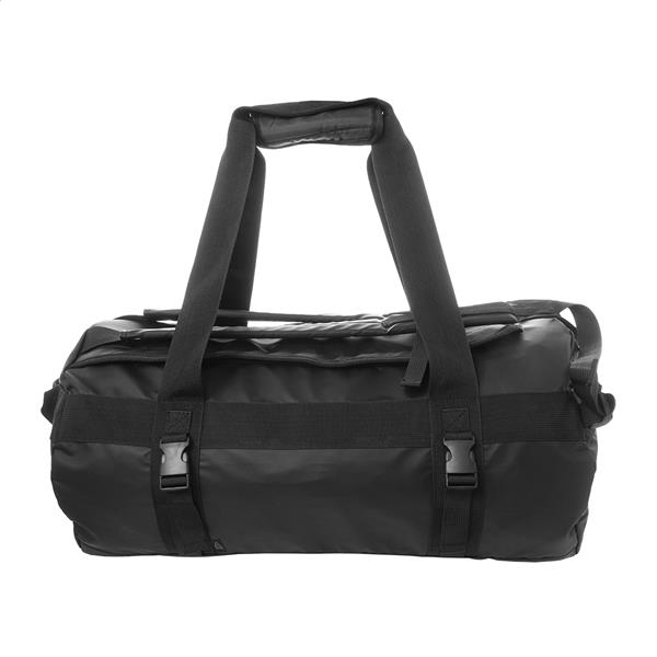 Wodoodporna, miękka torba sportowa z recyklingowanej skóry PU, którą można również używać jako plecaka. Z główną komorą zapinaną na suwak, wyściełanym tyłem i paskami na ramiona. Z charakterystyczną metką z recyklingowanego PU.