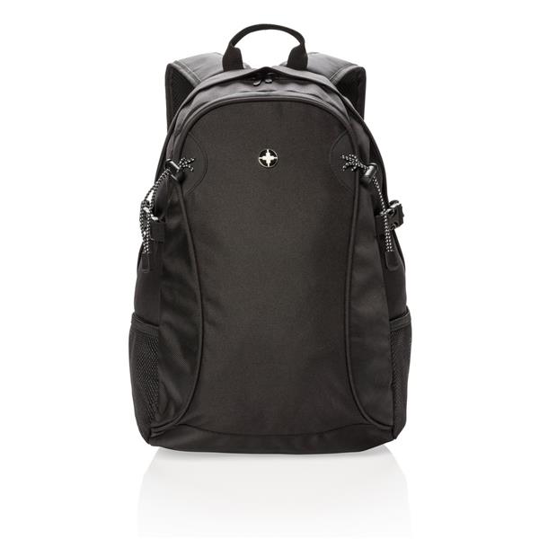 Plecak sportowy, wykonany z poliestru 600D i 1680D, główna przegroda, boczne kieszenie siateczkowe, wygodny dla pleców tylny panel, nie zawiera PVC, ślad węglowy produktu: 4,16 kg CO2