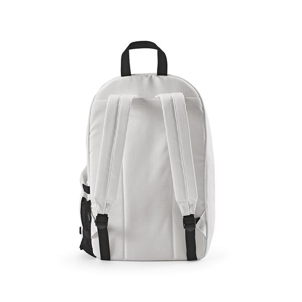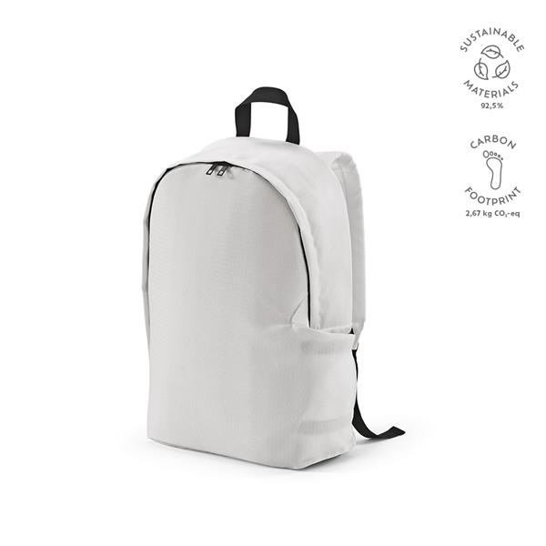 Nasz plecak z materiału 600D rPET z wykończeniem ripstop z łatwością poradzi sobie w ciągu dnia. Plecak posiada dedykowaną tylną komorę na laptopa 17” oraz przestronną komorę centralną. Solidny górny uchwyt oferuje wygodne opcje przenoszenia.