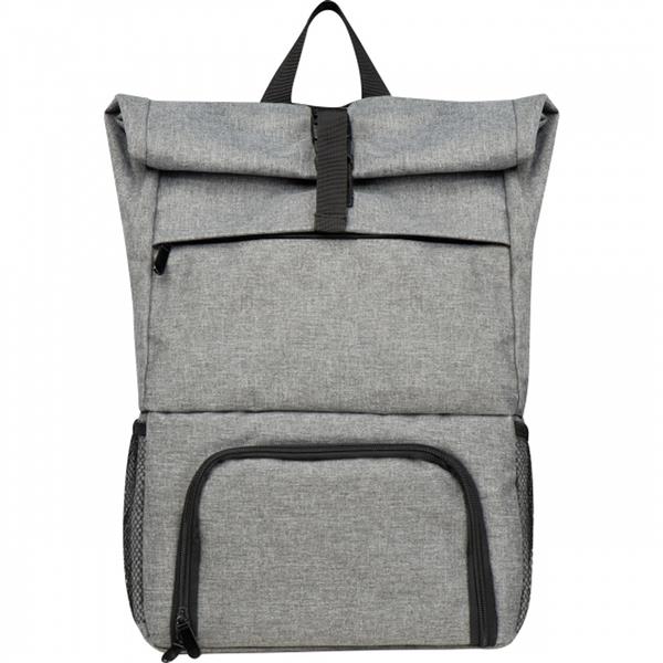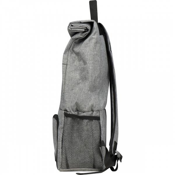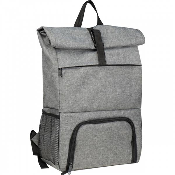 Stylowy plecak wykonany z wytrzymałego poliestru 600D z oddzielną komorą chłodzącą. Dzięki regulowanemu zatrzaskowi u góry rozmiar plecaka można indywidualnie dopasować do wypełnienia. Posiada również przednią przegrodę zapinaną na zamek, dwie przegrody z siatki na zewnątrz (jedna po prawej i jedna po lewej stronie) oraz regulowane, wyściełane szelki.