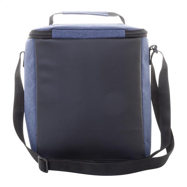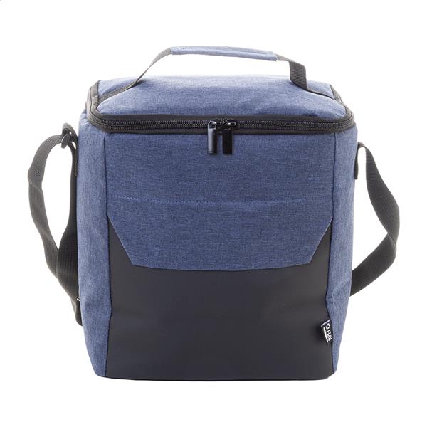 Zapinana na zamek torba termiczna z RPET z detalami powlekanymi PU i wyściółką PEVA. Z uchwytem, ??regulowanym paskiem na ramię i małą kieszenią z przodu. Poliester 600D RPET z charakterystyczną metką RPET.