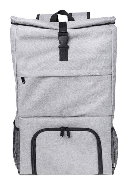 Plecak termoizolacyjny Rolltop RPET z zapinaną na suwak komorą chłodzącą PEVA na lunch box. Z główną komorą zamykaną na suwak, przednią kieszenią zapinaną na suwak, bocznymi kieszeniami z siatki i wyściełanymi paskami na ramię. Poliester RPET 600D z charakterystyczną metką RPET.