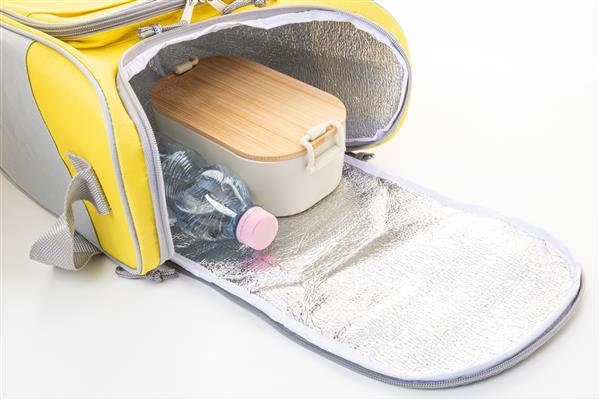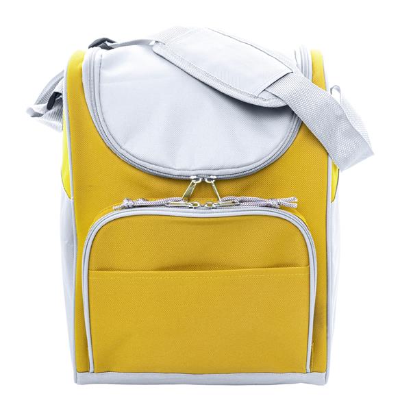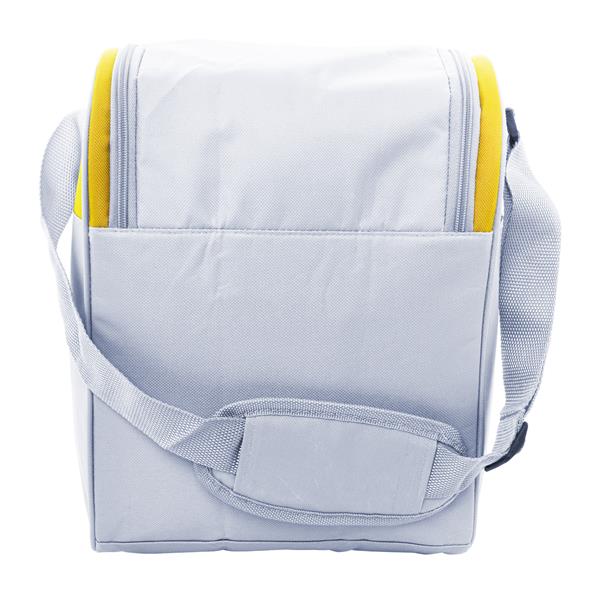 Torba termiczna RPET z aluminiową wyściółką. Z 2 przegrodami na suwak, małą kieszenią z przodu i regulowanym paskiem na ramię. Poliester 600D RPET z charakterystyczną metką RPET.