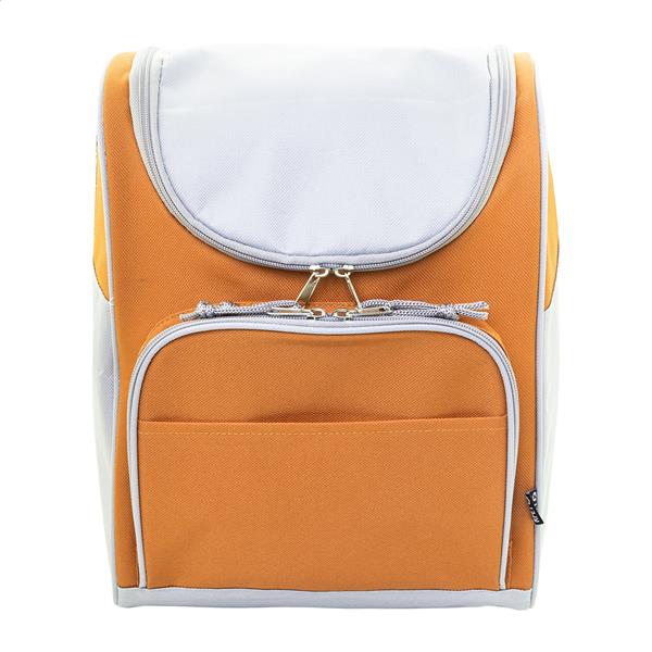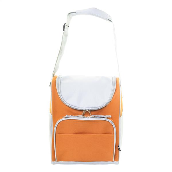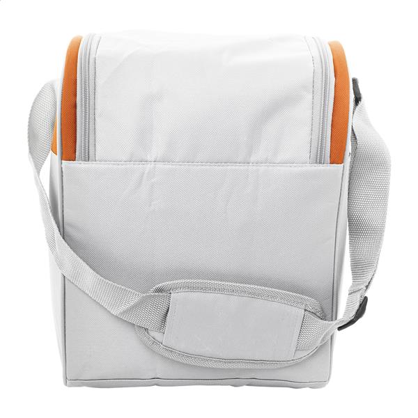 Torba termiczna RPET z aluminiową wyściółką. Z 2 przegrodami na suwak, małą kieszenią z przodu i regulowanym paskiem na ramię. Poliester 600D RPET z charakterystyczną metką RPET.
