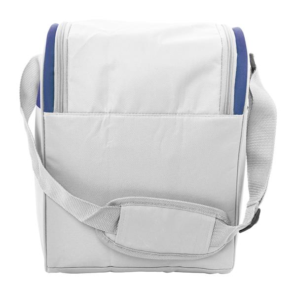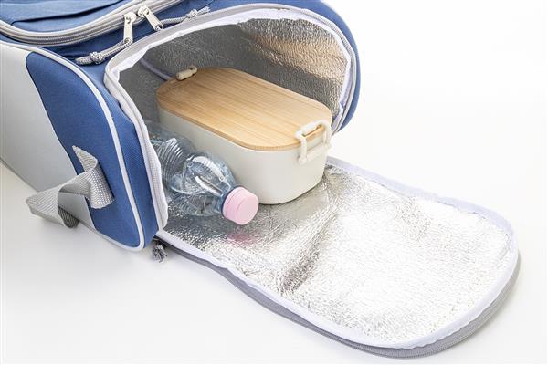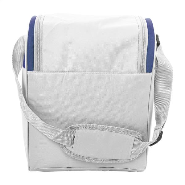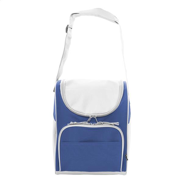 Torba termiczna RPET z aluminiową wyściółką. Z 2 przegrodami na suwak, małą kieszenią z przodu i regulowanym paskiem na ramię. Poliester 600D RPET z charakterystyczną metką RPET.