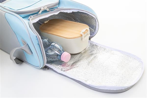 Torba termiczna RPET z aluminiową wyściółką. Z 2 przegrodami na suwak, małą kieszenią z przodu i regulowanym paskiem na ramię. Poliester 600D RPET z charakterystyczną metką RPET.