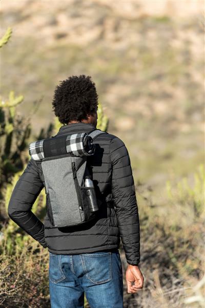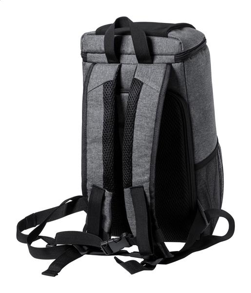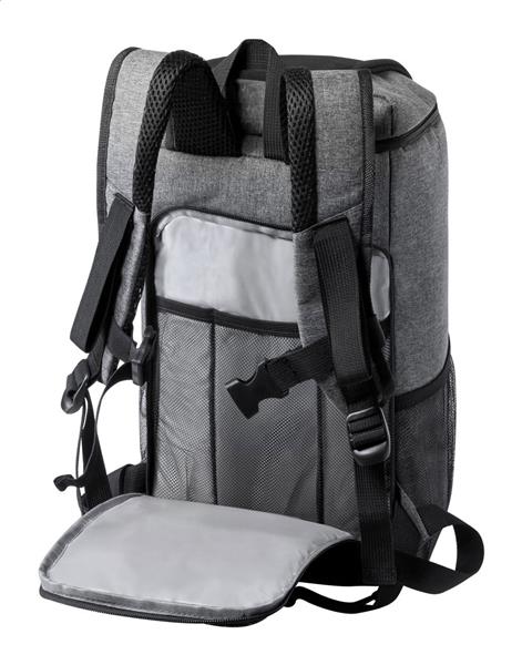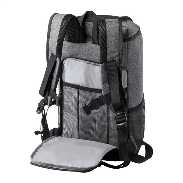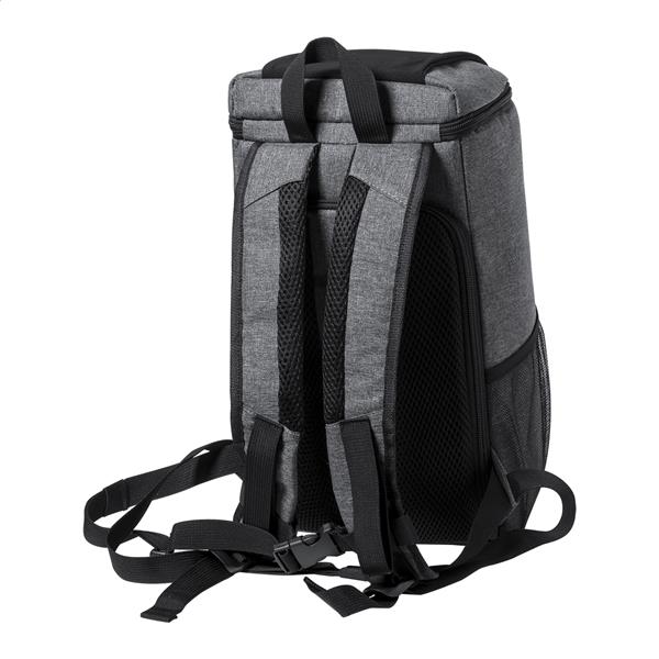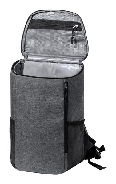 Plecak termoizolacyjny RPET z zapinaną na zamek kieszenią główną z wyściółką PEVA, bocznymi kieszeniami z siatki i wyściełanymi szelkami. Z charakterystyczną metką RPET. Poliester 600D RPET.