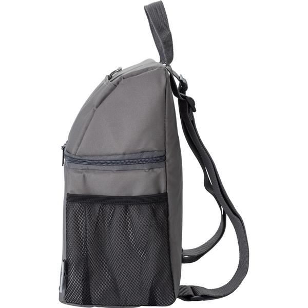 Plecak termoizolacyjny, wykonany z RPET, przegroda główna na zamek błyskawiczny, siateczkowe kieszenie boczne, regulowane paski na ramię