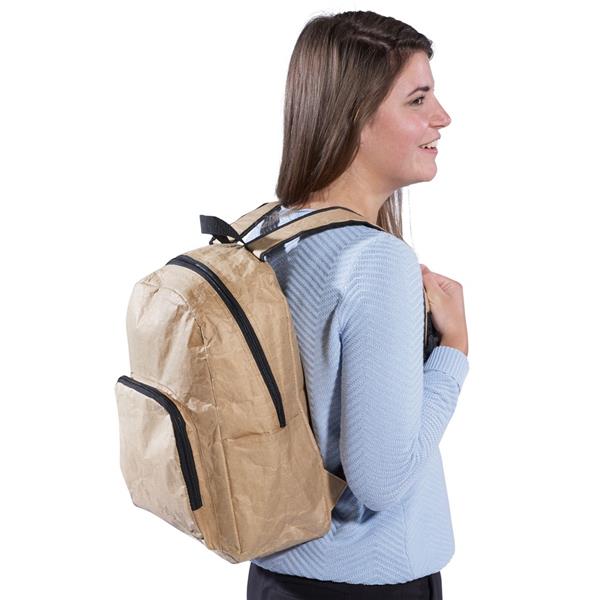 Plecak termoizolacyjny z laminowanego papieru, z główną przegrodą i przednią kieszenią na zamek błyskawiczny, regulowane paski na ramię