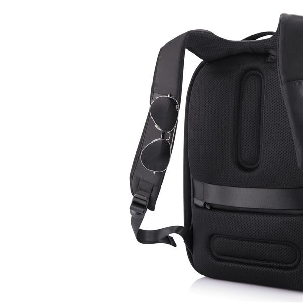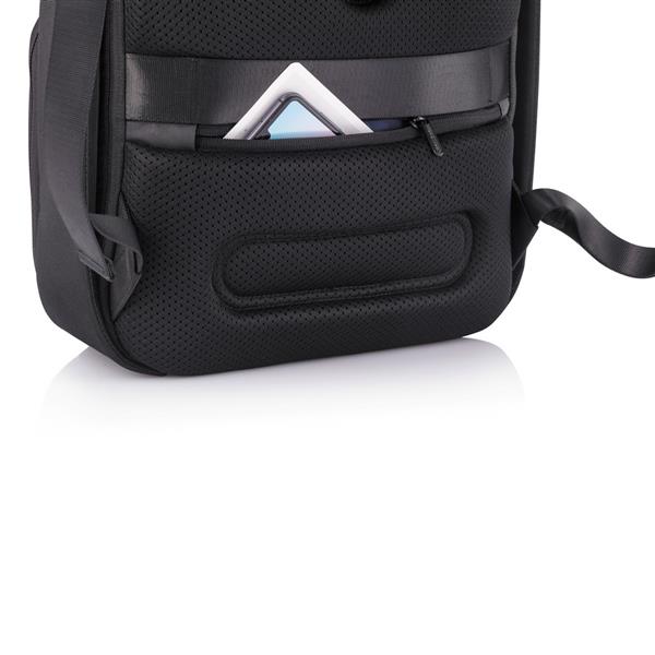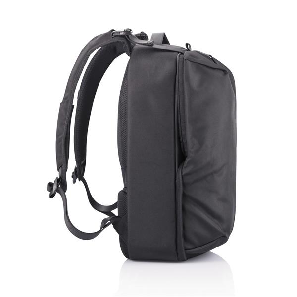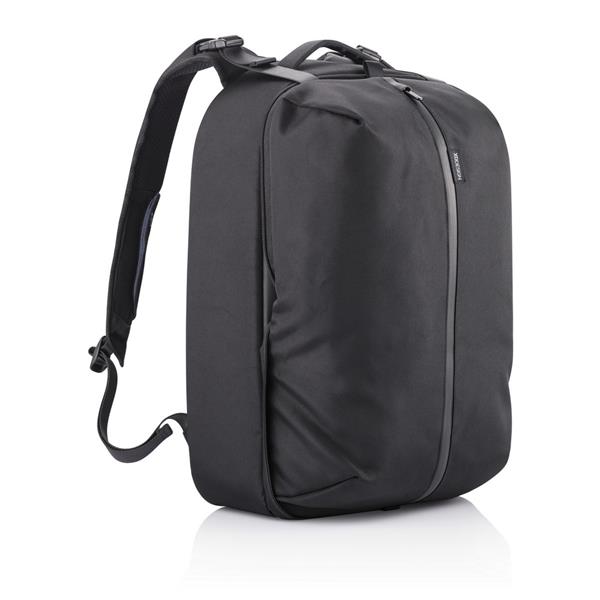 Plecak, torba podróżna, sportowa, wykonana z przyjaznego środowisku materiału rPET, antykradzieżowa konstrukcja bez dostępu z przodu, ukryte zamki i kieszenie, zamiana z plecaka w torbę sportową odbywa się poprzez rozszerzenie kieszeni przedniej z 16 l do 24 l, przestronna przegroda główna z kieszeniami, kieszeń z ochroną RFID, zintegrowany port USB do ładowania telefonów (power-bank nie jest dołączony), posiada uchwyt na okulary, wzór zastrzeżony®, ślad węglowy produktu: 8,39 kg CO2