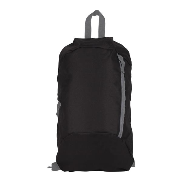 Plecak z główną przegrodą i przednią kieszenią na zamek błyskawiczny, posiada miękkie i regulowane paski na ramię umożliwiające dopasowanie ich długości do własnych preferencji, produkt wykonany z poliestru 600D