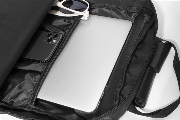 Plecak RPET z komorą zapinaną na zamek, 2 kieszeniami z przodu zapinanymi na zamek, wyściełaną przegrodą na laptopa (15″) i siateczkowymi kieszeniami bocznymi. Z wyściełanym tyłem i szelkami, kieszenią antykradzieżową i paskiem do noszenia na wózku. Wykonany z poliestru RPET o splocie skośnym, z charakterystyczną metką RPET.
