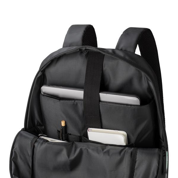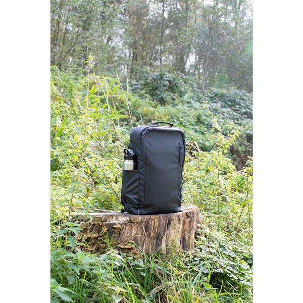 Plecak wodoodporny, boczna kieszeń na butelkę, duża kieszeń zapinana na zamek z przodu, kieszeń antywłamaniowa, wzmocniony spód oraz wewnętrzna kieszeń na laptopa z wieloma małymi przegródkami