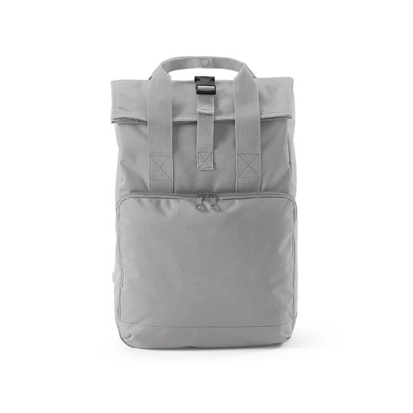 Poznaj miejską funkcjonalność dzięki naszemu plecakowi z recyklingu. Wykonany z 600D rPET, posiada przednią kieszeń i wygodne rolowane zamknięcie z klamrą. Wyściełany panel tylny zapewnia wygodę i efektywne przechowywanie niezbędnych rzeczy.