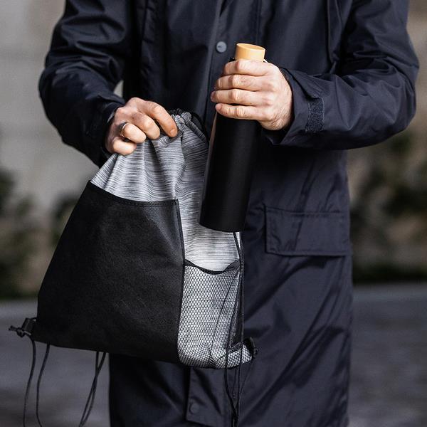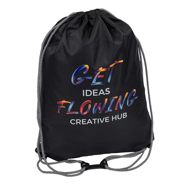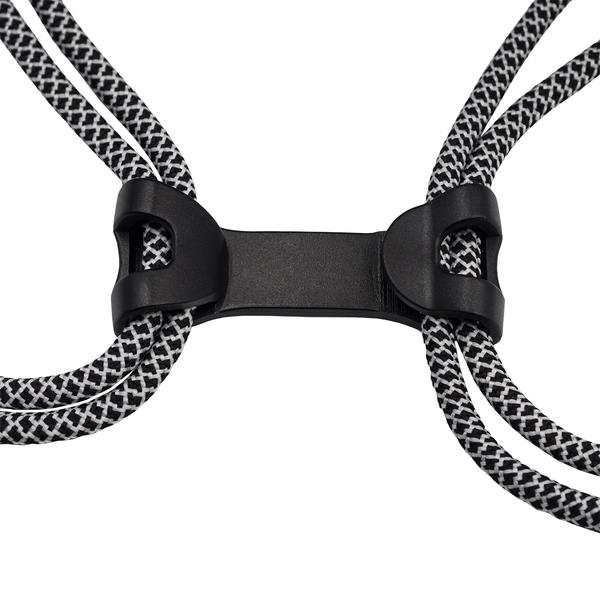 Plecak z grubymi plecionym linkami oraz klamrą spinającą je dla większego komfortu noszenia.
