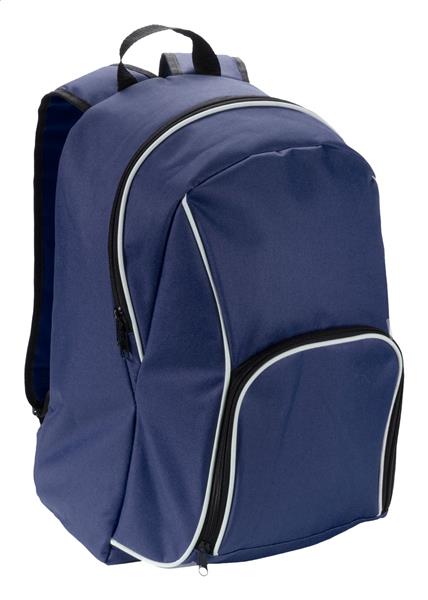 Plecak z zapinanymi kieszeniami oraz wyściełanymi plecami i ramiączkami. Materiał 600D poliester.