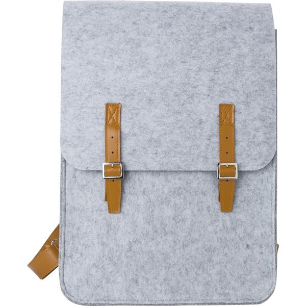Plecak, wykonany z filcu RPET, detale z PU, przegroda główna na regulowane paski z klamrami, regulowane paski na ramię