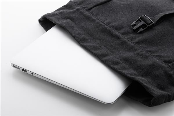 Plecak z płótna z recyklingu z zapięciem na klamrę i kieszenią z przodu zapinaną na zamek, wykonany z miękkiej, recyklingowanej skóry PU. Z wyściełaną przegrodą na laptopa (15″), kieszeniami bocznymi, wyściełanym tyłem i paskami na ramię. Wykonany w 70% z bawełny z recyklingu i w 30% z poliestru RPET. Z charakterystyczną metką z bawełny z recyklingu.