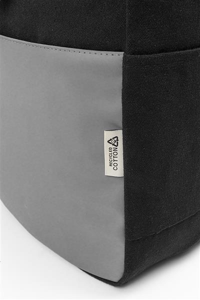 Plecak z płótna z recyklingu z zapięciem na klamrę i kieszenią z przodu zapinaną na zamek, wykonany z miękkiej, recyklingowanej skóry PU. Z wyściełaną przegrodą na laptopa (15″), kieszeniami bocznymi, wyściełanym tyłem i paskami na ramię. Wykonany w 70% z bawełny z recyklingu i w 30% z poliestru RPET. Z charakterystyczną metką z bawełny z recyklingu.