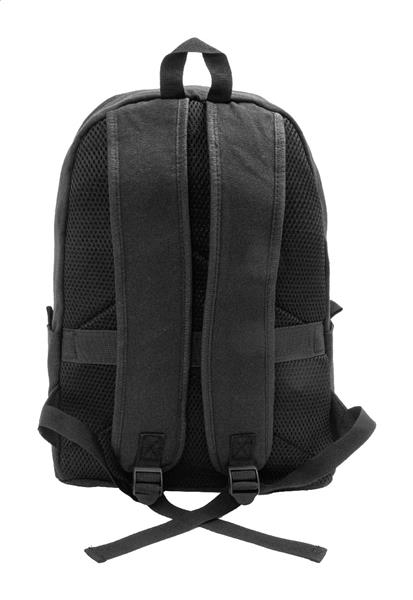Plecak z płótna z recyklingu z główną komorą zapinaną na zamek, wyściełaną przegrodą na laptopa (15″), 2 kieszeniami z przodu zapinanymi na zamek, kieszeniami bocznymi, paskiem do noszenia na walizce, wyściełanymi plecami i paskami na ramię. Wykonany w 70% z bawełny z recyklingu i w 30% z poliestru RPET. Z charakterystyczną metką z bawełny z recyklingu.