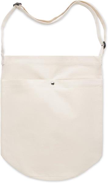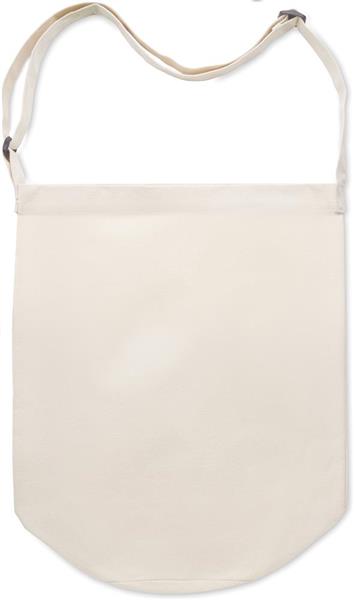 Torba z płótna z długim, regulowanym paskiem na ramię i dużą przednią kieszenią z zamknięciem na zatrzask. Zawiera wewnętrzną kieszeń. 270 gr/m2.