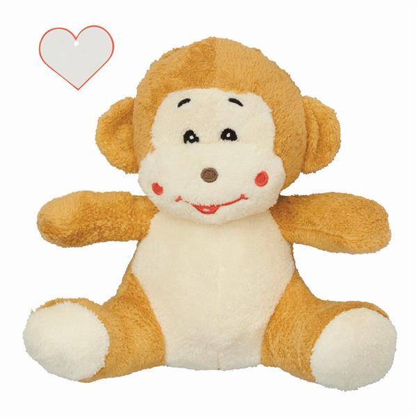 Pluszowa małpka ELIAS z miękkim futerkiem i serduszkiem do nadruku. Wyprodukowana w Europie. Materiał: Poliester Kolor: biały, brązowy Tagi: Pluszaki,pluszaki,zabawki,zabawki dla dzieci,wyprodukowane w Europie