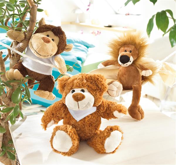 Pluszowa małpka INGO z miękkim futerkiem i koszulką (pakowana oddzielnie) do nadruku.