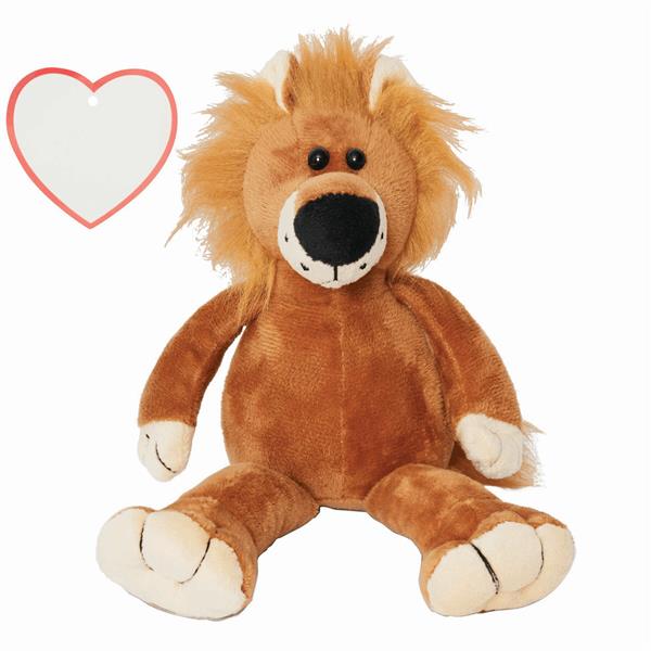 Pluszowy lew FETZY z miękkim futerkiem i sercem do nadruku.