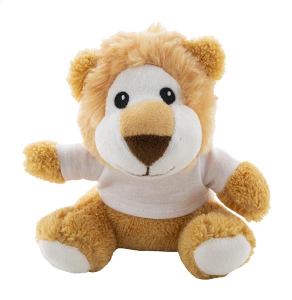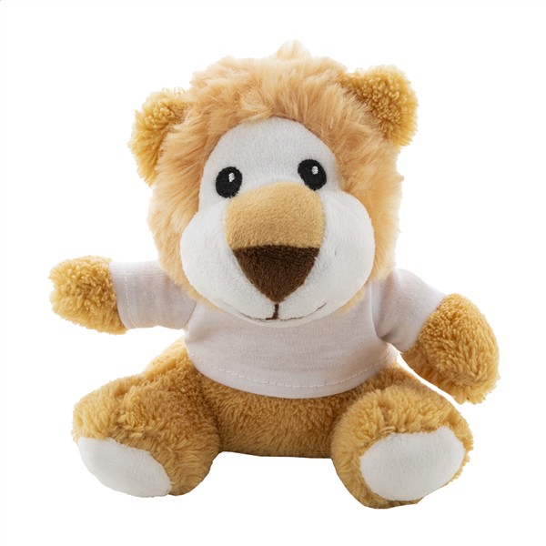 Pluszowy lew RPET z koszulką do nadruku z poliestru RPET.