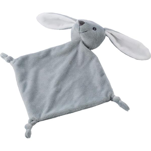 Pluszowy mini kocyk z węzłami na rogach i głową zwierzątka, etykieta pod personalizację