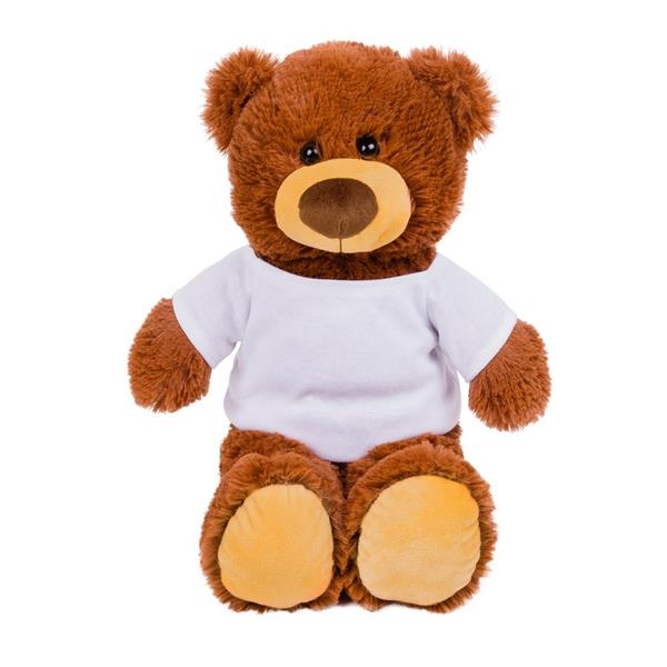 Miś z białą koszulką pod nadruk, nieoznakowana koszulka z poliestru jest pakowana oddzielnie, produkt wykonany z pluszu