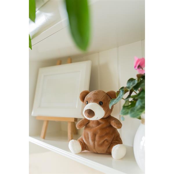 Miś z możliwością nadruku na brzuchu, obciążenie w postaci drobnych kulek ułatwia utrzymanie równowagi w pozycji siedzącej, produkt wykonany z pluszu