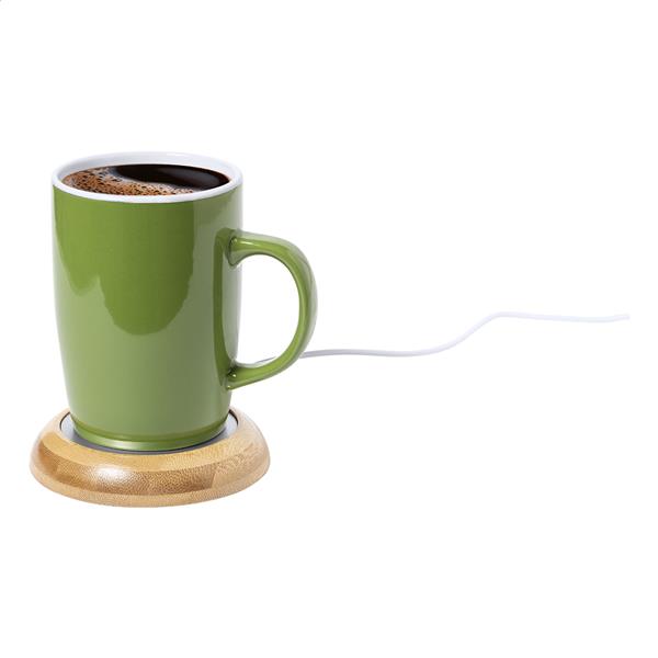Podgrzewacz do kubków USB w bambusowej obudowie. W zestawie kabel USB.