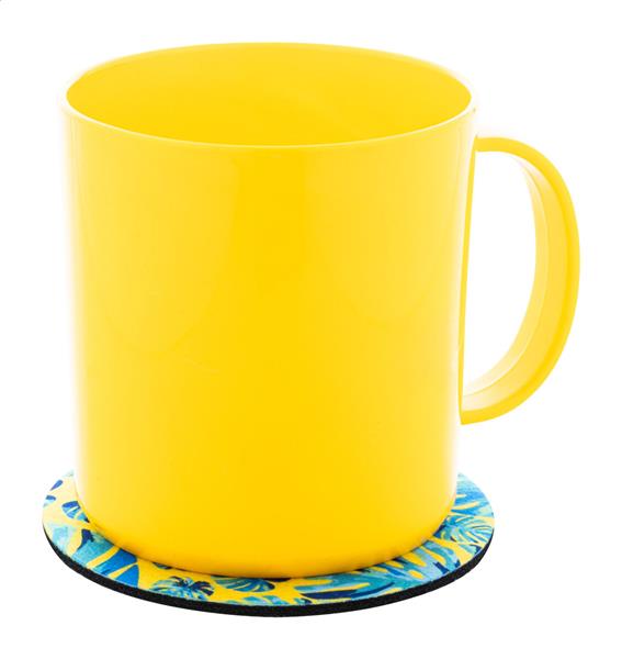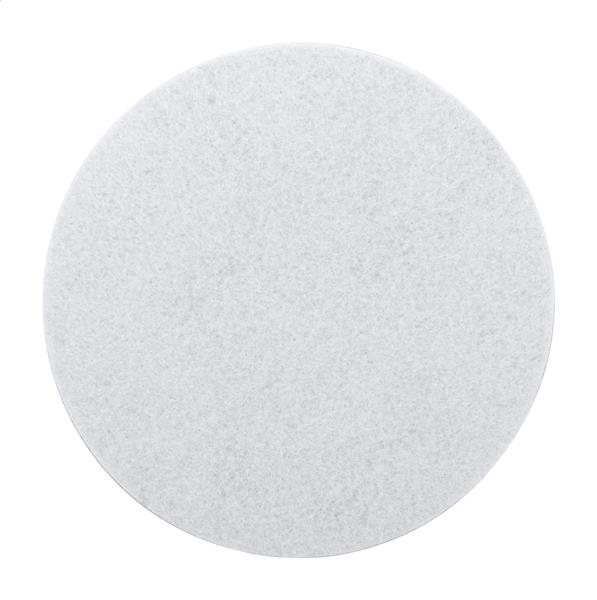Description: Wykonana na zamówienie podkładka z filcu RPET z gumową antypoślizgową podstawą z własną grafiką po jednej stronie. Cena obejmuje nadruk sublimacyjny. Min. Ilość: 100 szt. Primary Color: biały Material 2: Guma Shape: koło Material 1: PET z recyklingu Rozmiar: o95×3 mm