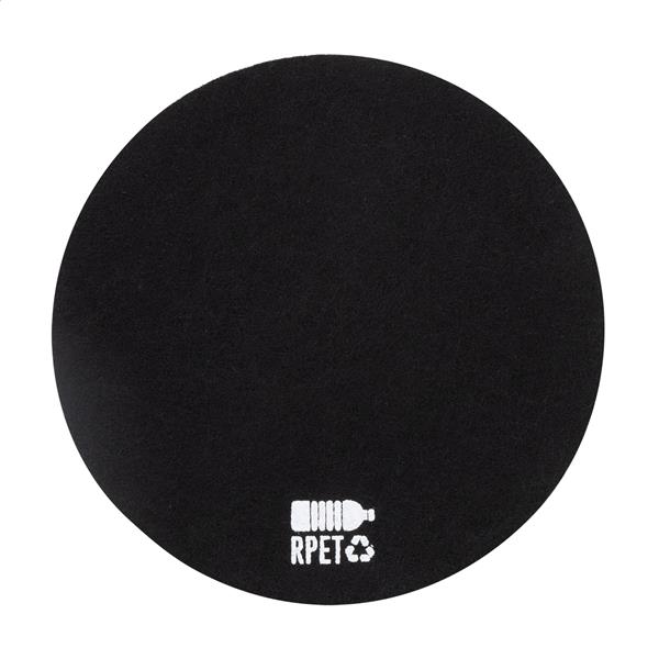 Okrągła podkładka z filcu RPET. Z charakterystyczną metką RPET.